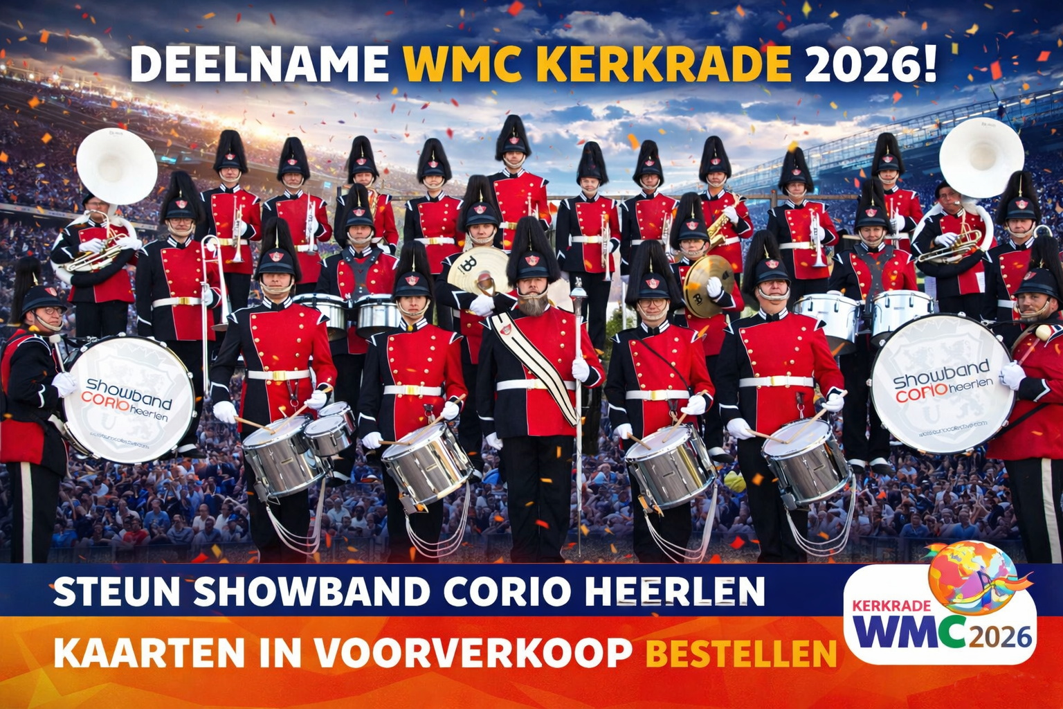 Op 11 juli 2026 staat Showband Corio weer te knallen op het WMC in Kerkrade! ![]()